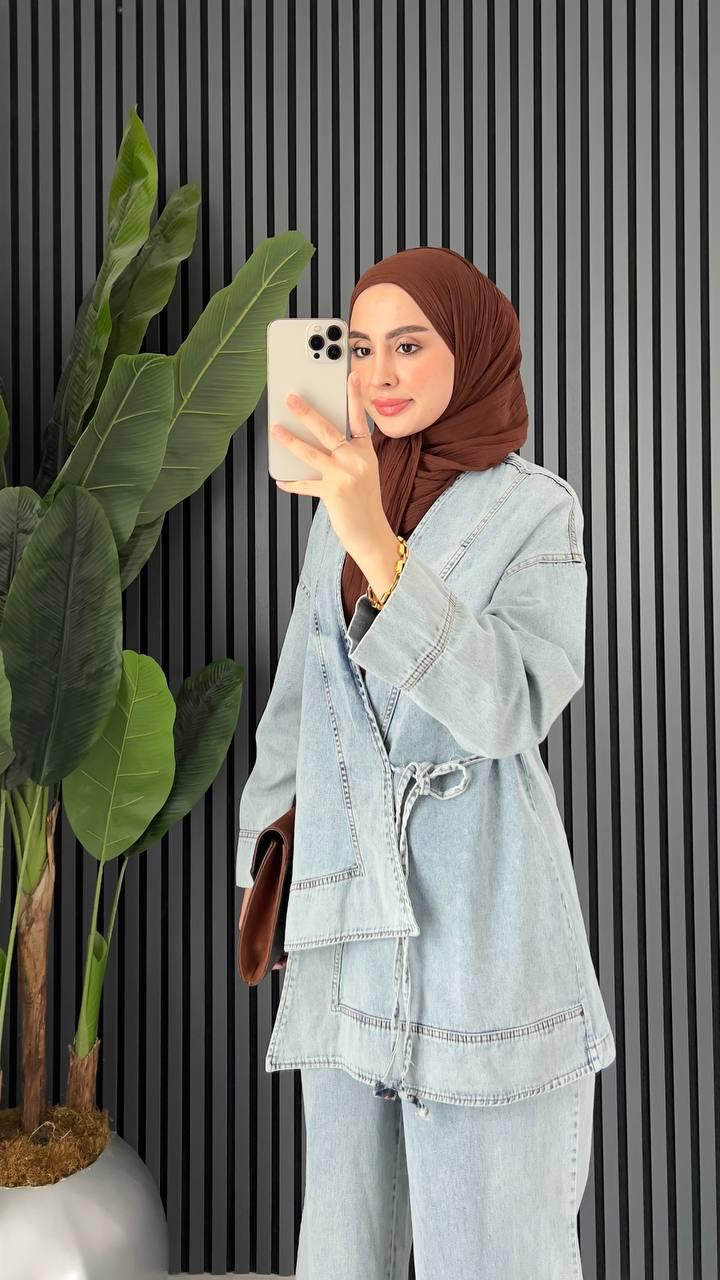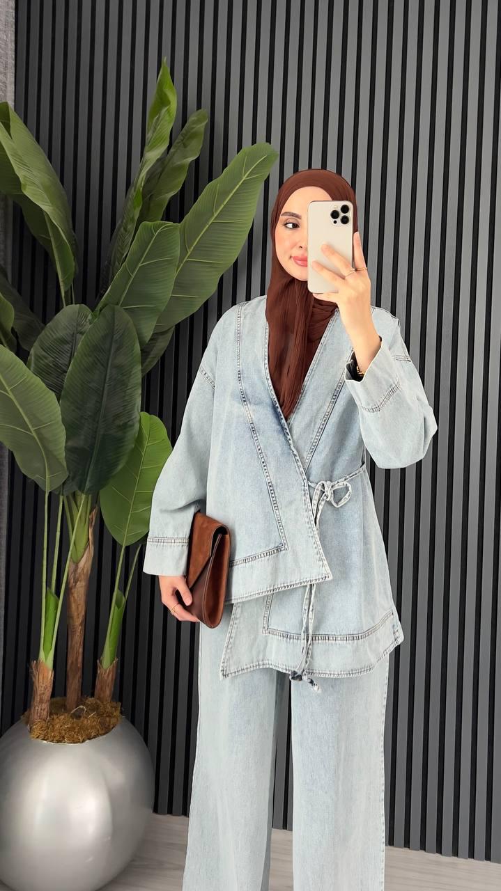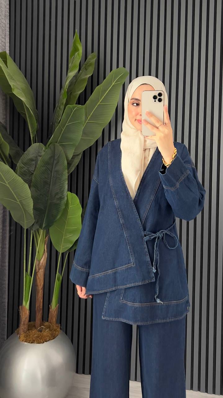 Adoptez un look tendance avec notre ensemble en jean spécialement pensé pour la vie quotidienne. Alliant confort et élégance, il est parfait pour toutes celles qui aiment associer praticité et style.
