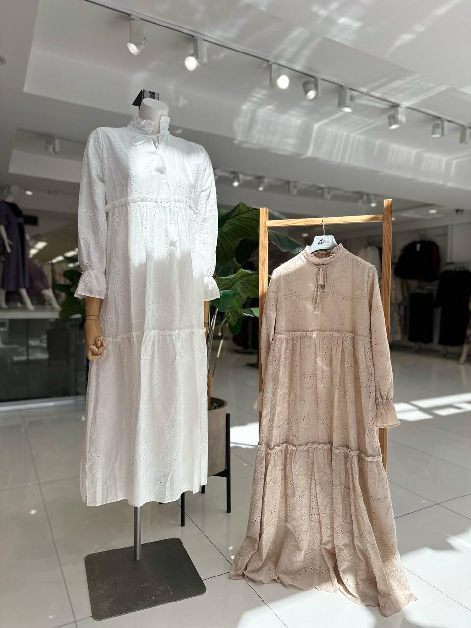 Associée à un voile assorti, la robe révèle toute sa beauté dans un équilibre parfait entre modestie et sophistication — une ode à la douceur et à la délicatesse.